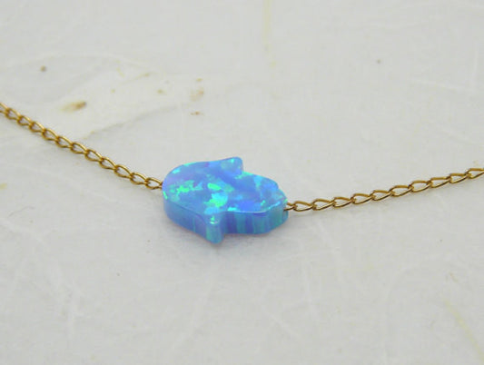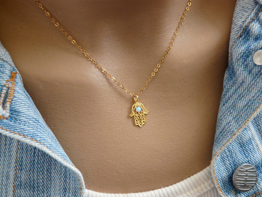 Gold Hamsa Necklace with Opal – Protective Elegance