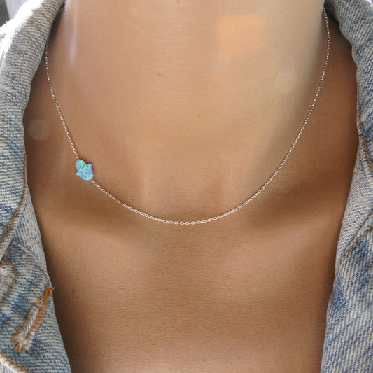 Opal Sideways Hamsa Necklace