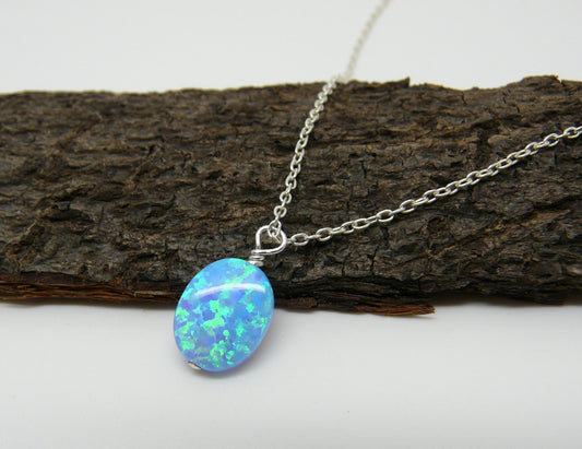 Wire Wrapped Opal Necklace – Minimalist Elegance