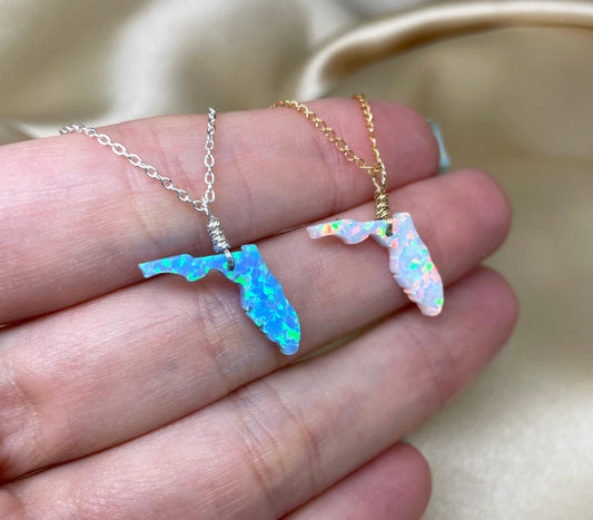 Show your state pride with our Opal State Necklaces collection! Whether you're celebrating your hometown, a long-distance connection, or a special place, our shimmering 14K gold-filled and sterling silver necklaces make the perfect keepsake. Each pendant is crafted from stunning opal that reflects beautifully in the sunlight, creating a unique and meaningful accessory.