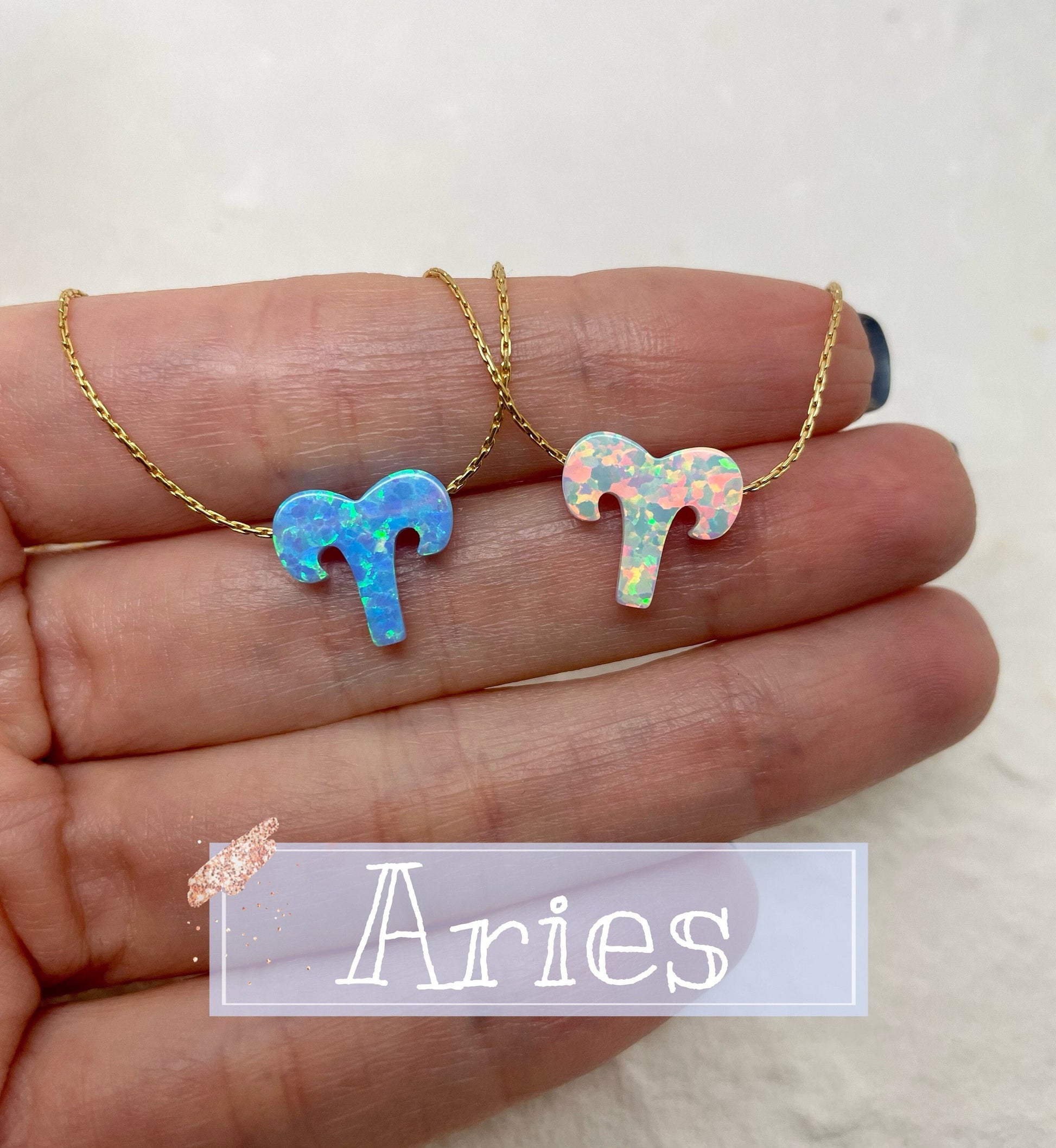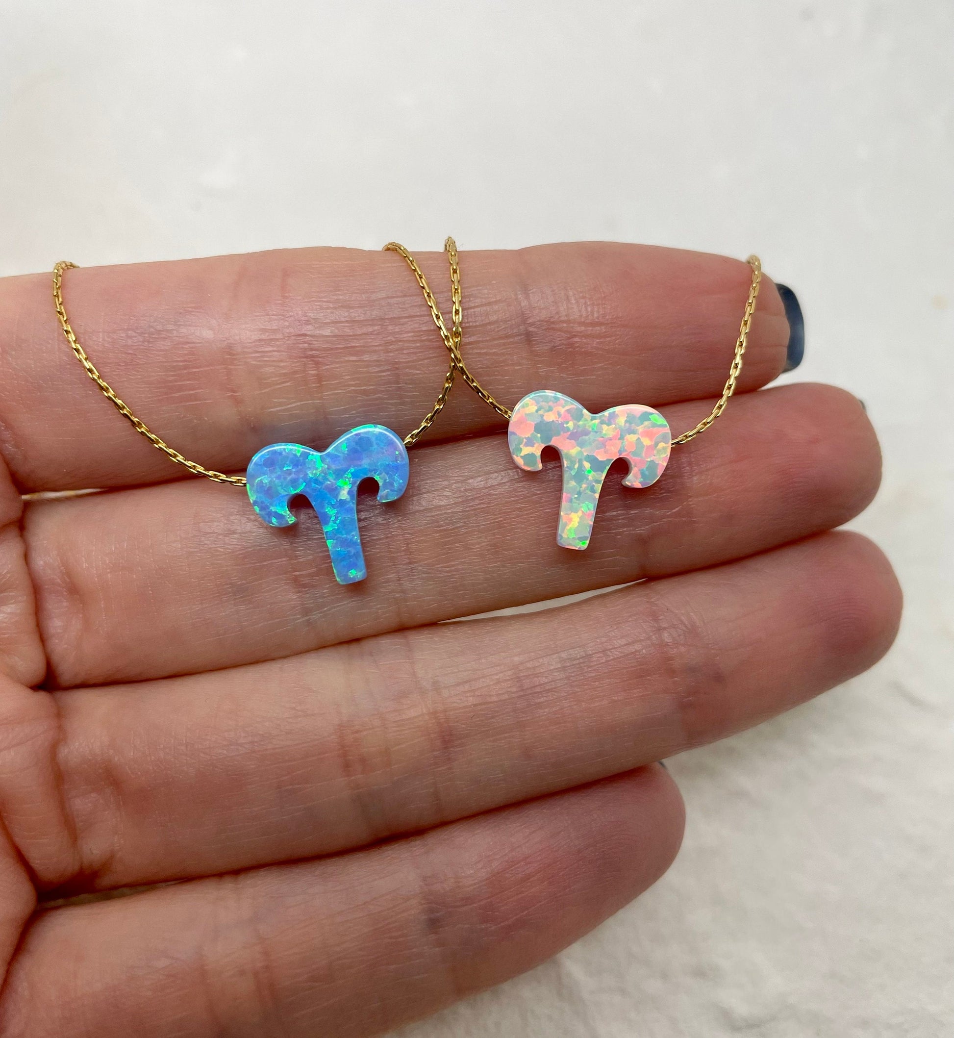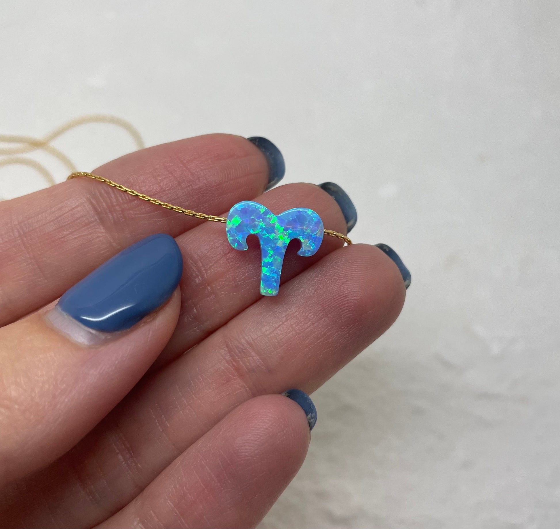 Channel the fearless energy of Aries with this stunning opal zodiac necklace! Featuring a beautifully crafted Aries ram charm, this piece is set on a 14K gold-filled or sterling silver chain, making it the perfect birthstone necklace for those born between March 21 – April 19. The iridescent opal reflects the passion, ambition, and strength that define Aries personalities.