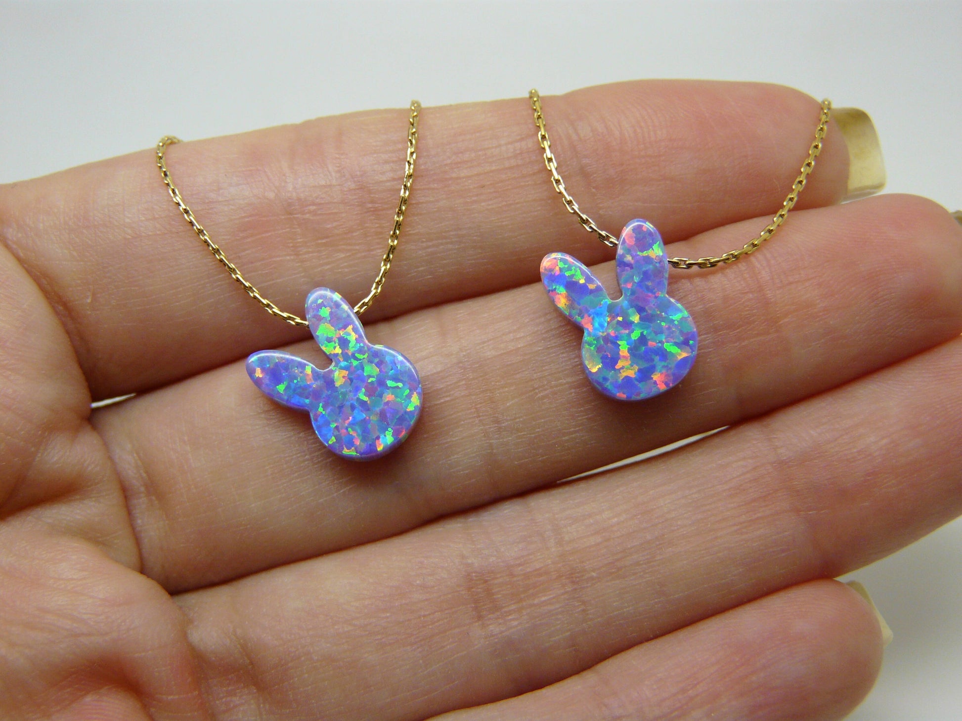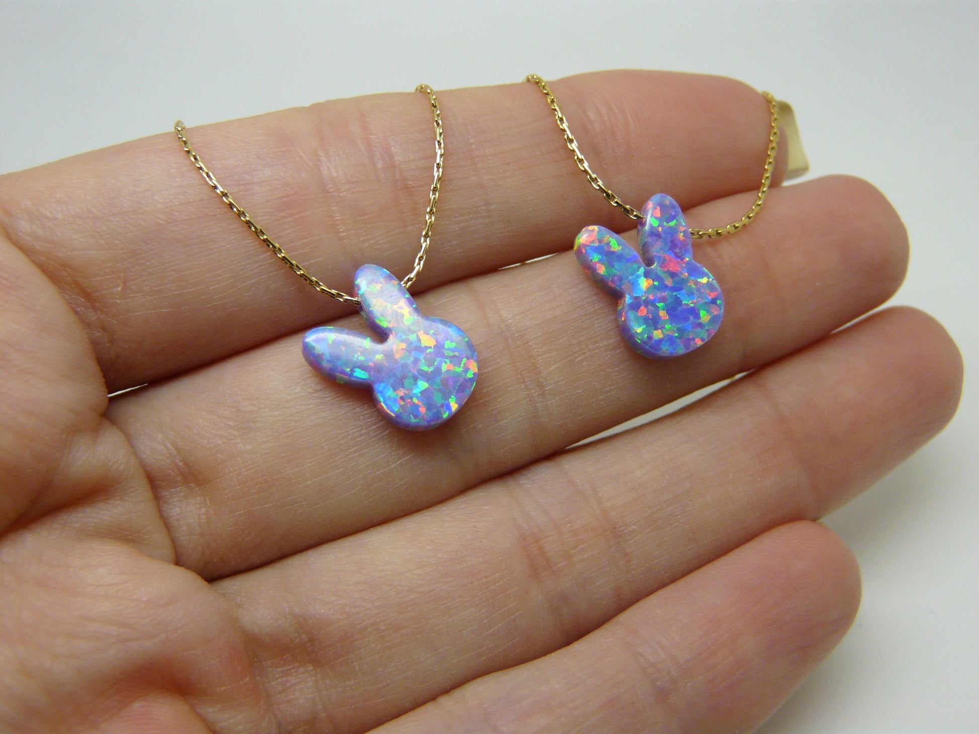 ✔️ Opal bunny pendant – 12mm, shimmering with playful iridescence