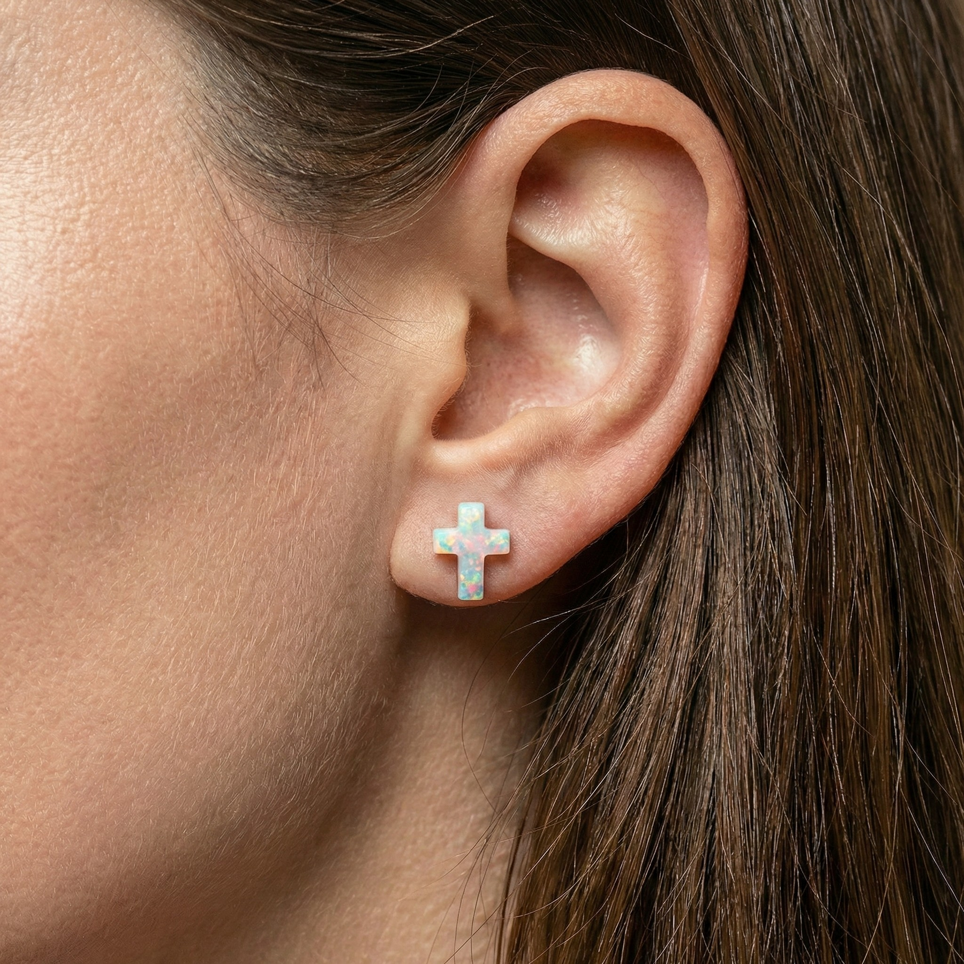 Opal Cross Stud Earrings – a minimalist and elegant design, featuring shimmering opal cross pendants set in sterling silver settings. Available in multiple vibrant colors, these earrings are perfect for daily wear or meaningful religious gifts.