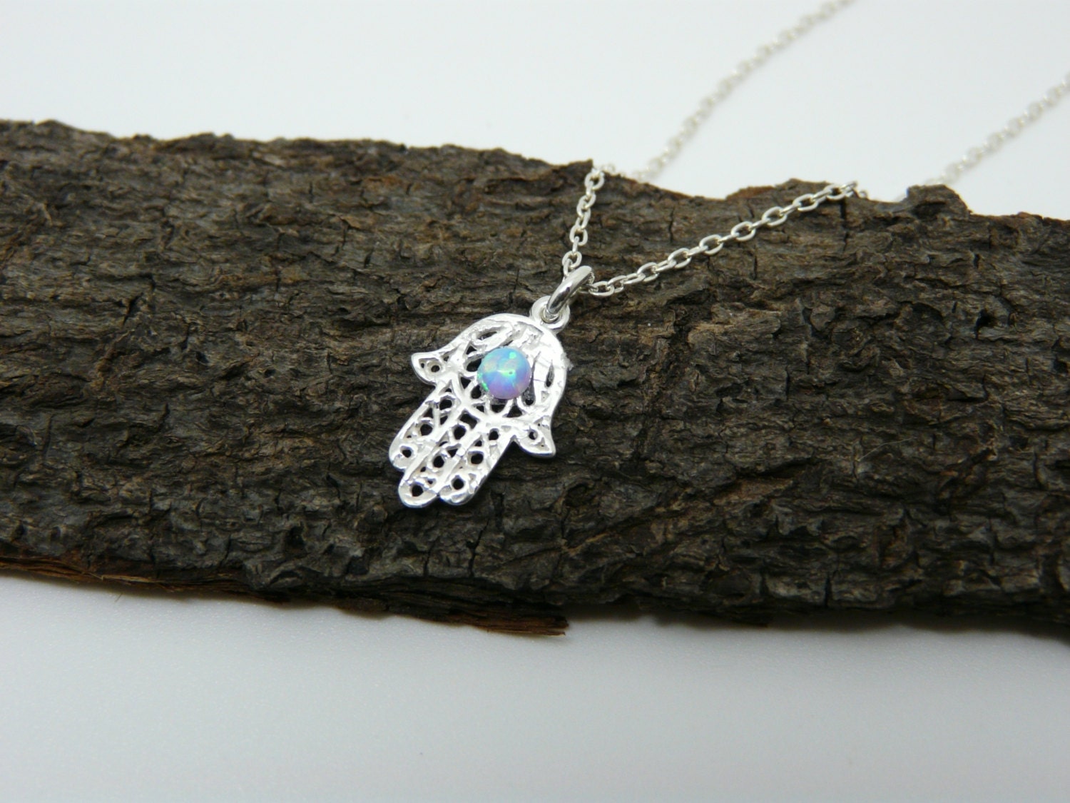 Carry a timeless symbol of protection and good fortune with this sterling silver Hamsa pendant, featuring a mesmerizing 3mm opal bead. The Hamsa hand is known for bringing positivity, strength, and luck, making this filigree design both meaningful and stylish. Perfect for everyday wear or special occasions.