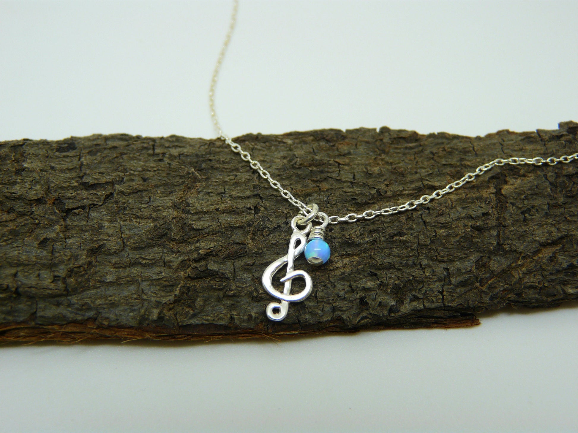 Celebrate your love for music with this elegant treble clef necklace! Perfect for musicians, singers, and music lovers alike, this delicate charm embodies the harmony and beauty of sound. The shimmering opal bead adds a dreamy touch, making this piece a must-have for your jewelry collection.