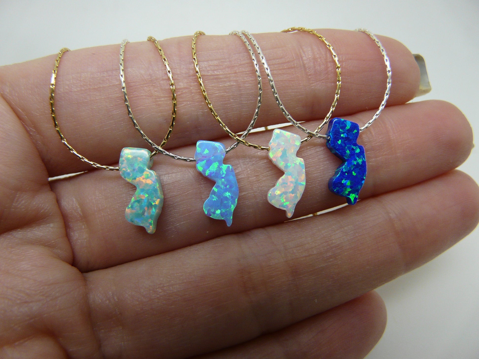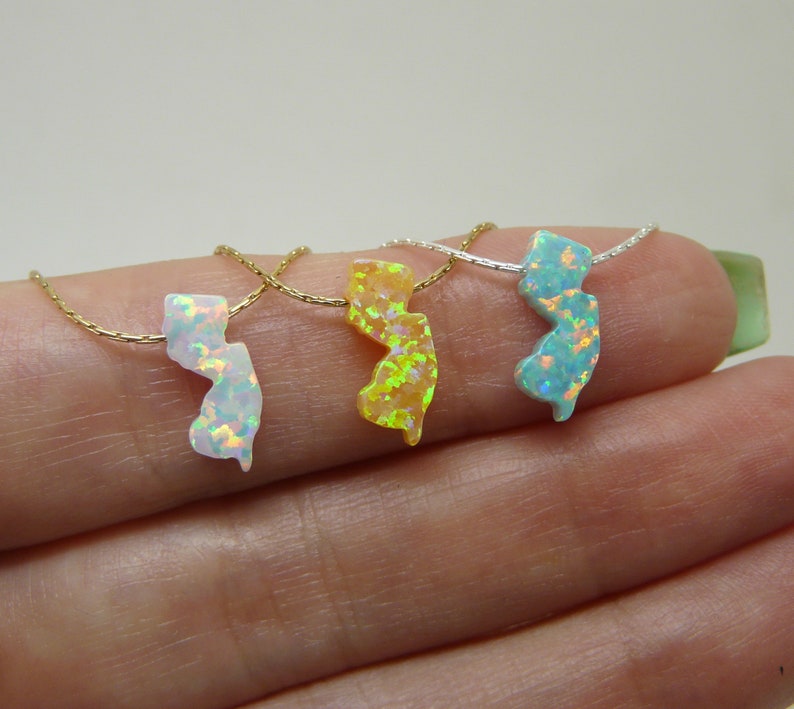 Celebrate your love for New Jersey with this exquisite opal state necklace. Designed in the iconic NJ shape, this pendant shimmers with vibrant opal colors, reflecting the beauty and spirit of the Garden State. Whether you're a NJ native, traveler, or looking for a sentimental gift, this necklace is a meaningful keepsake.