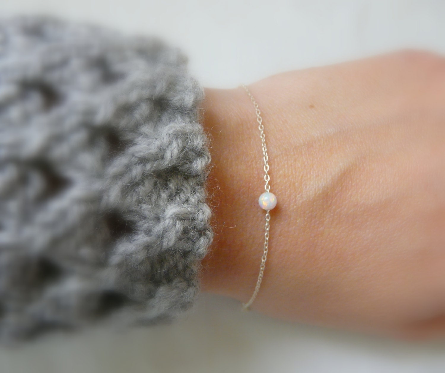 A dainty and elegant opal bracelet featuring a 4mm opal bead, delicately set on a gold-filled or sterling silver chain. With multiple color options available. Each bead reflects mesmerizing colors, especially in sunlight, making every piece unique.