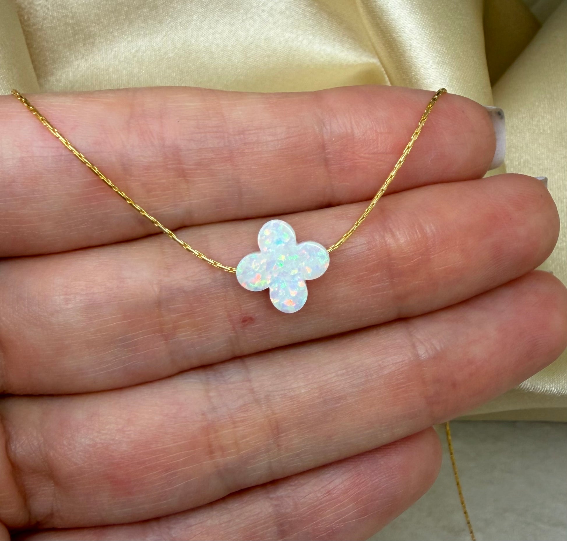 Add a little sparkle and good fortune to your day with this dreamy opal clover necklace! β¨