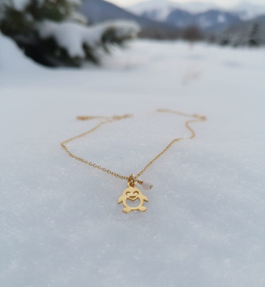 Penguin Necklace with Tiny Opal Charm