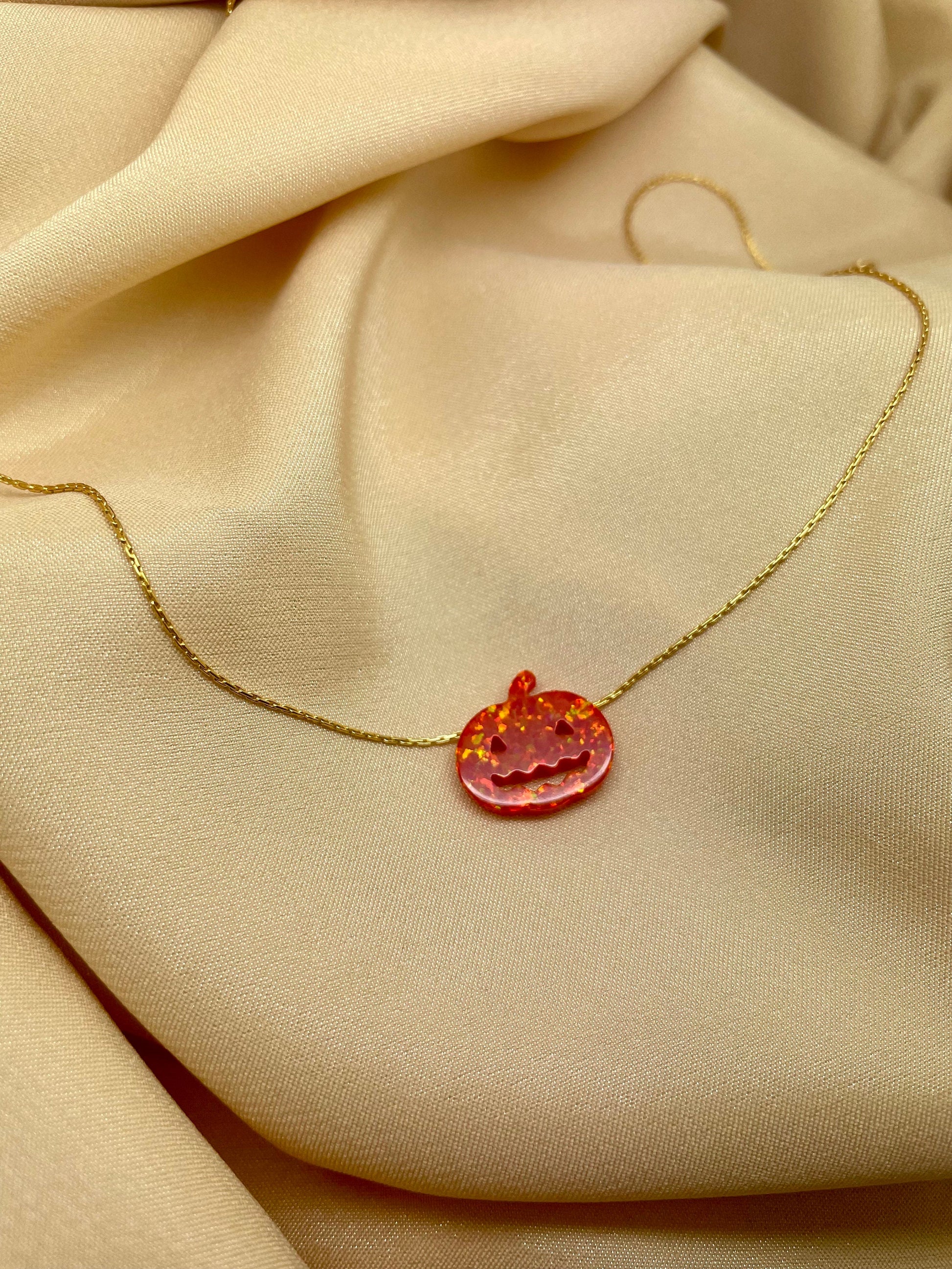 Get into the Halloween spirit with this adorable opal pumpkin necklace! This festive piece adds a touch of sparkle and whimsy to any outfit, making it a must-have for spooky season lovers. The shimmering opal charm and delicate chain make this necklace a fun and unique addition to your collection.