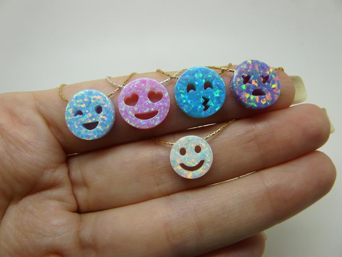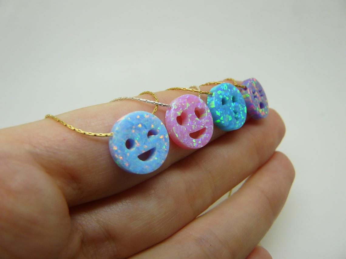 ✔️ Charming Opal Smiley Pendant – Measures 12mm of happiness