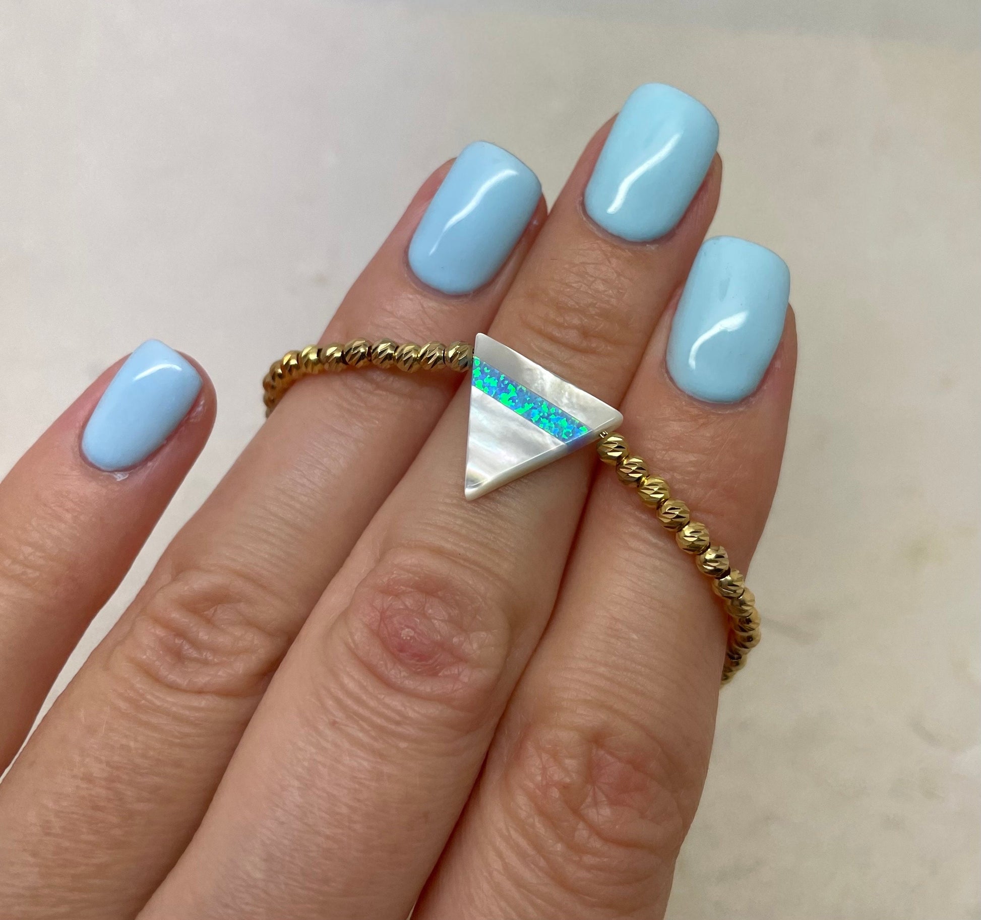 Add a modern touch to your jewelry collection with this stunning Opal & Mother of Pearl Triangle bracelet! Designed for those who love minimalist elegance with a bold geometric twist, this piece catches the light beautifully, making it a timeless and eye-catching accessory.