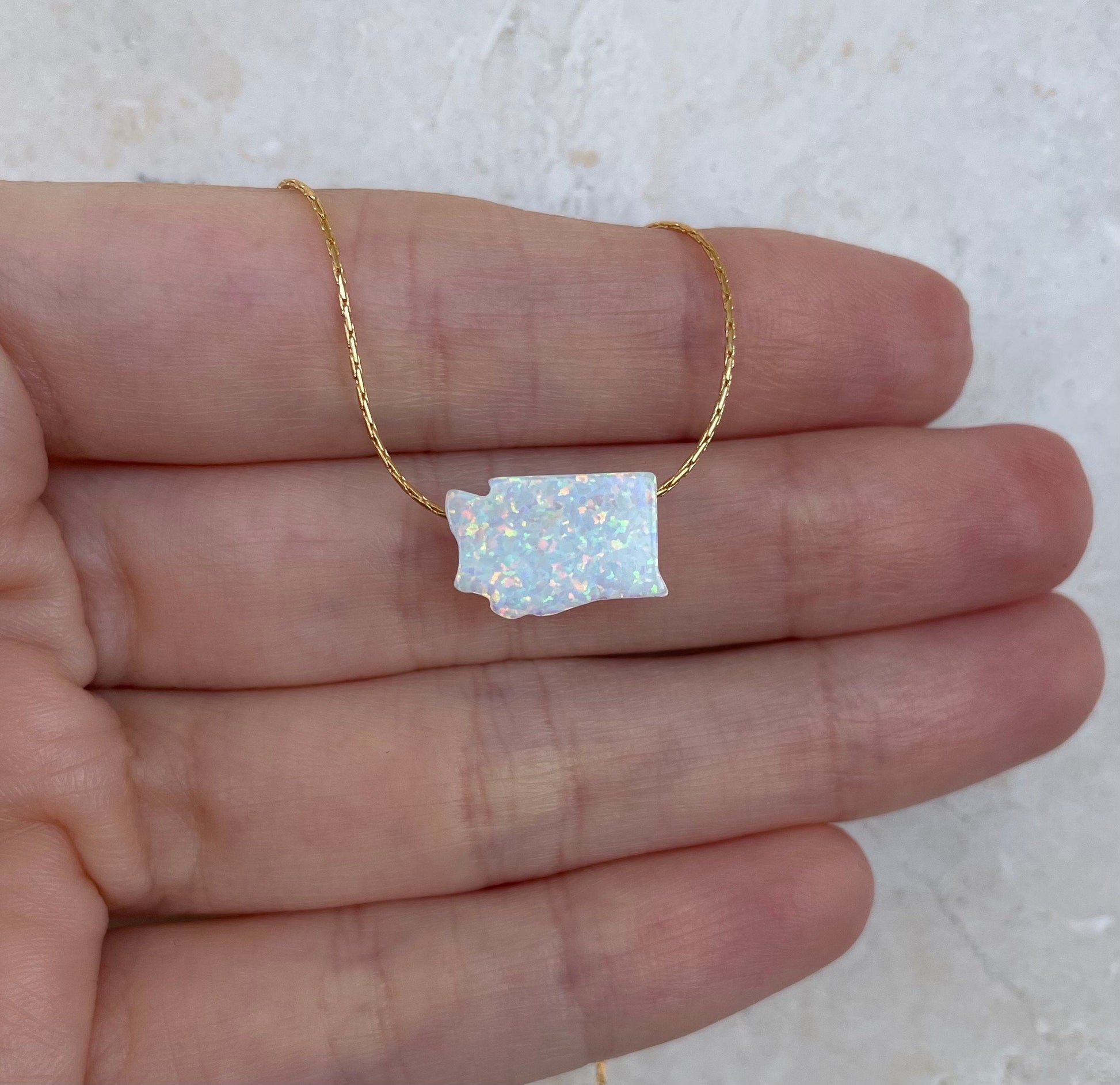 Show off your love for Washington with this stunning opal Washington-shaped pendant necklace. Designed with a shimmering opal charm, this delicate piece reflects light beautifully, making it a stylish and sentimental accessory. Whether you're a Washington native or a nature lover, this necklace is a perfect way to carry a piece of the Evergreen State with you.